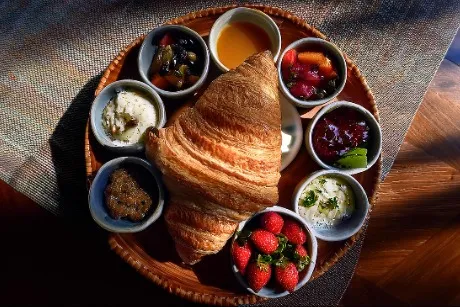 <b>İçindekiler:</b> Sıcak kruvasan ve eşlik eden taze malzemelerle kahvaltıya lezzet katın.